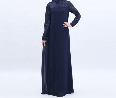 Turco modesto en línea gasa alta cintura islámica musulmana ropa mujer vestido negro Abaya Maxi vestidos