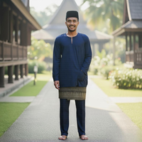 Sipo Eid Groothandel Malaysia Baju Melayu Elrah Moslim Mannen Set Verborgen Zip Satijn Fesyen Moderne Witte Baju Melayu